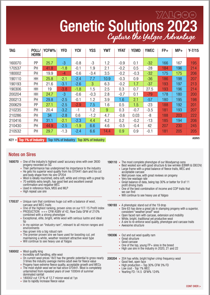 First and foremost Yalgoo is a commercial food and fibre enterprise. We are basically commercial breeders that put as much pressure on commercially relevant traits as possible. For five decades this has meant concentrating on the objective and measurable traits that make farmers money. We don’t get distracted by the intangibles that hinder genetic progress and we ensure genetic progress is both measurable and assured!
